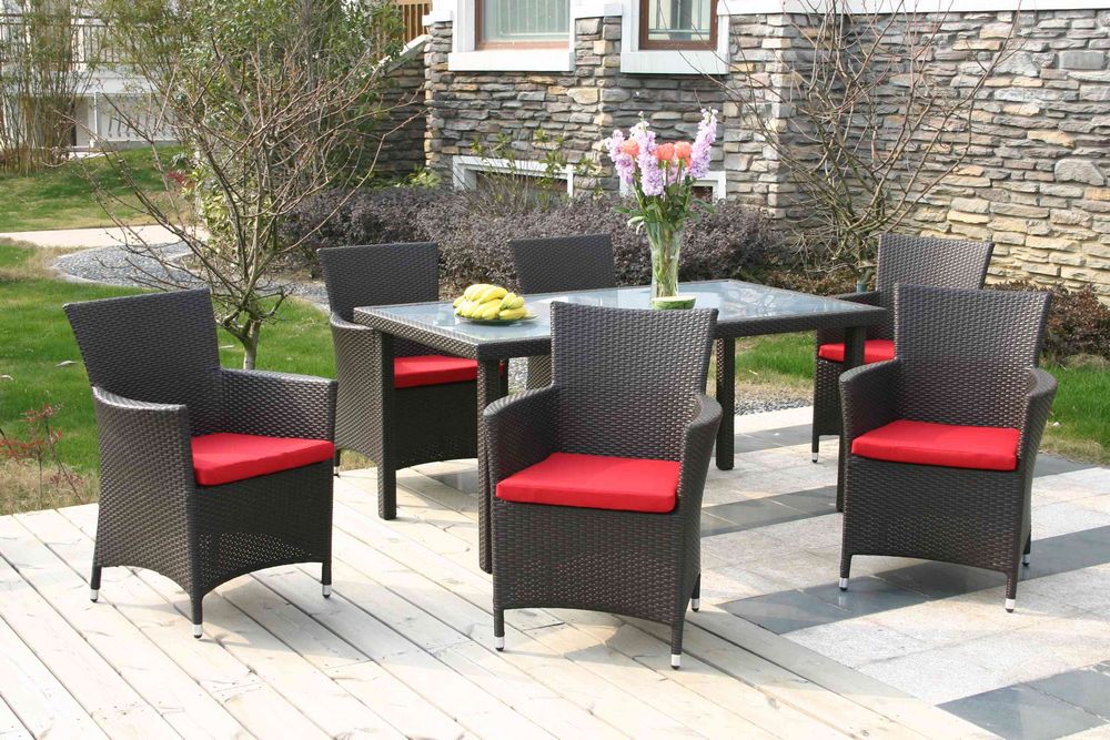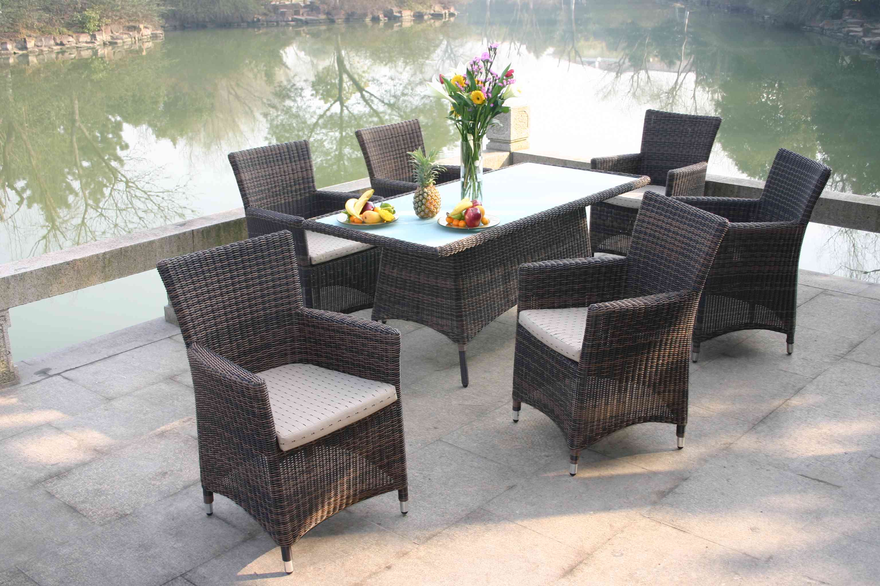 Outdoor rattan table and chairs 6 seater