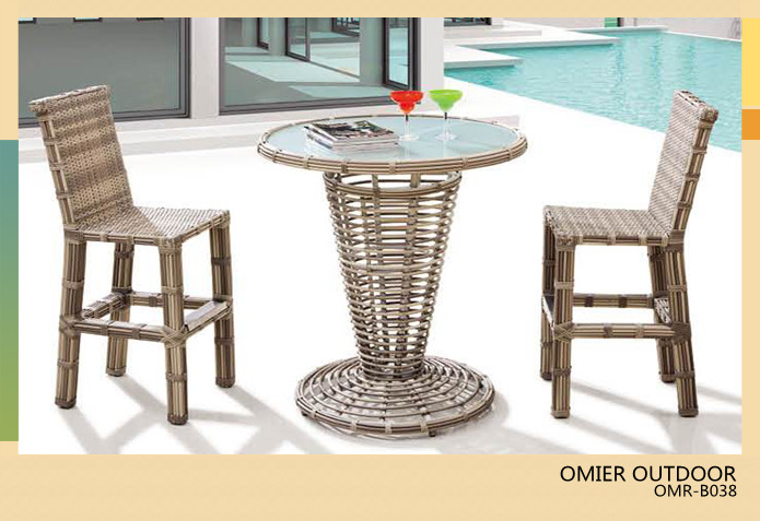 modern garden wicker bar table set square bar height table OMR-B038