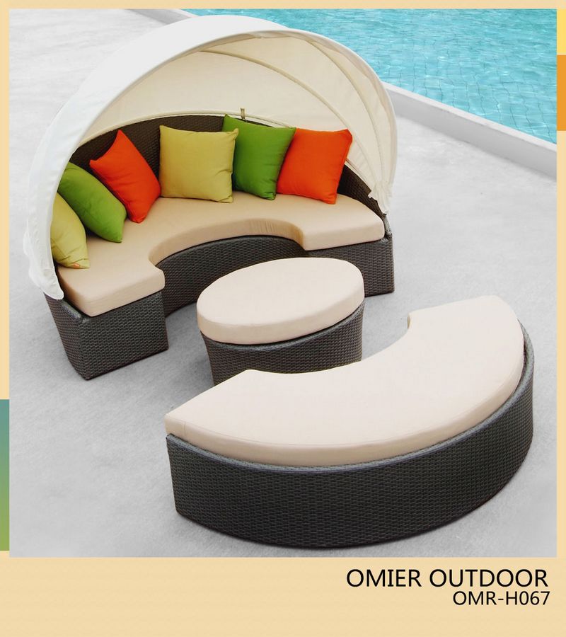 rattan outdoor pool sunbed with canopy furniture OMR-H067