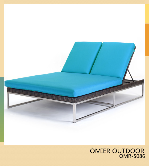 Modern Outdoor PE rattan double chaise lounge furniture OMR-S086