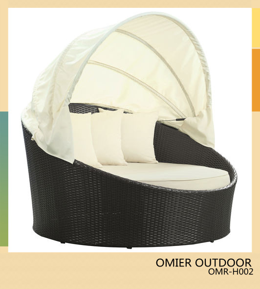 wicker/rattan outdoor round bed with shelter and canopy OMR-H002