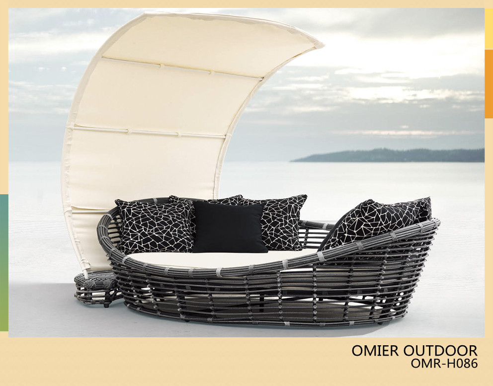 2013 New style all weather outdoor wicker day bed with canopy OMR-H086