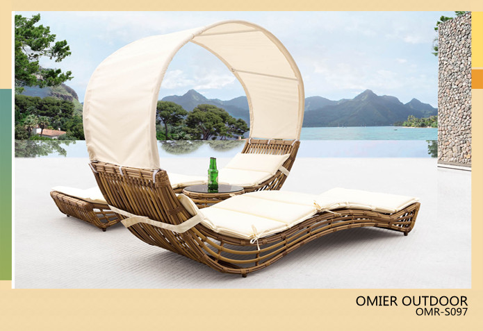 2013 New Style sun lounger with shade outdoor wicker sun lounger OMR-S097